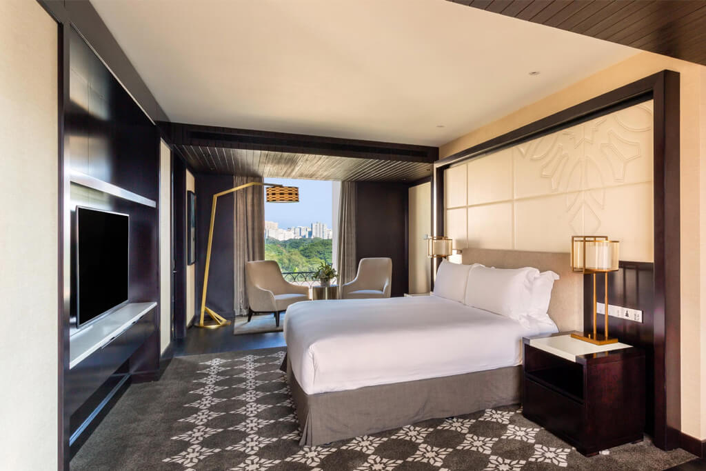 - In-room amenities include flat-screen TVs, minibars, premium toiletries, and complimentary high-speed Wi-Fi.