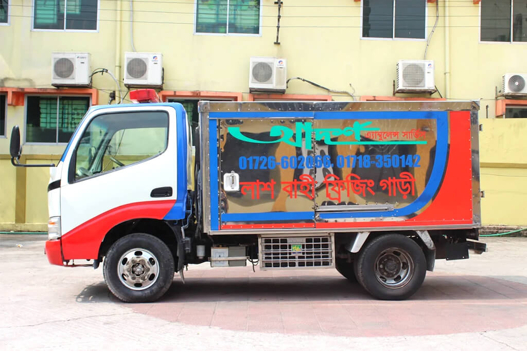Adorsho Ambulance Service provide there service all over Bangladesh. Based on Medical College Road, Kajalshah area, Sylhet – near Osmani Medical College & Hospital. Offers standard ambulance service; also mentions funeral (“lakh-bahi”/body‑transport) and fridge-equipped vans, available day & night.