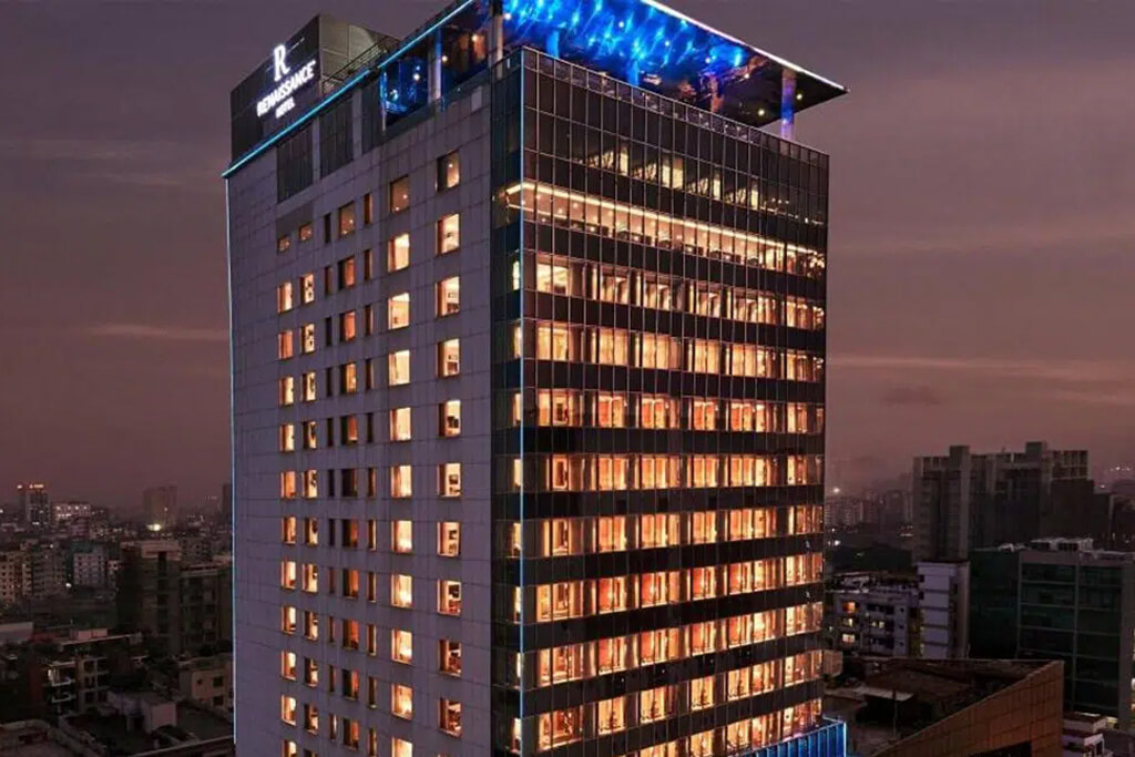 Experience elegance and top-notch amenities at Renaissance Hotel Dhaka. Your perfect stay awaits in the heart of the city. Located in the vibrant corporate hub of Gulshan, the Renaissance Dhaka Gulshan Hotel is ideal for business & leisure travelers. International Airport is just 10 minutes away with the new elevated expressway.